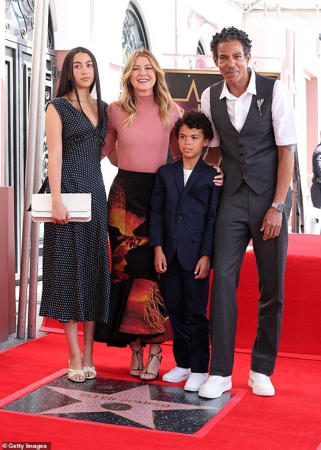 Елън Помпео със семейството си докато получава звезда на Алеята на славата.