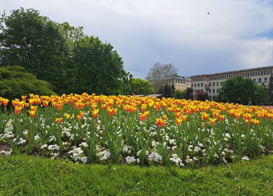 На разходка из София сме, сега лежерно се припичам на една слънчева пейка.