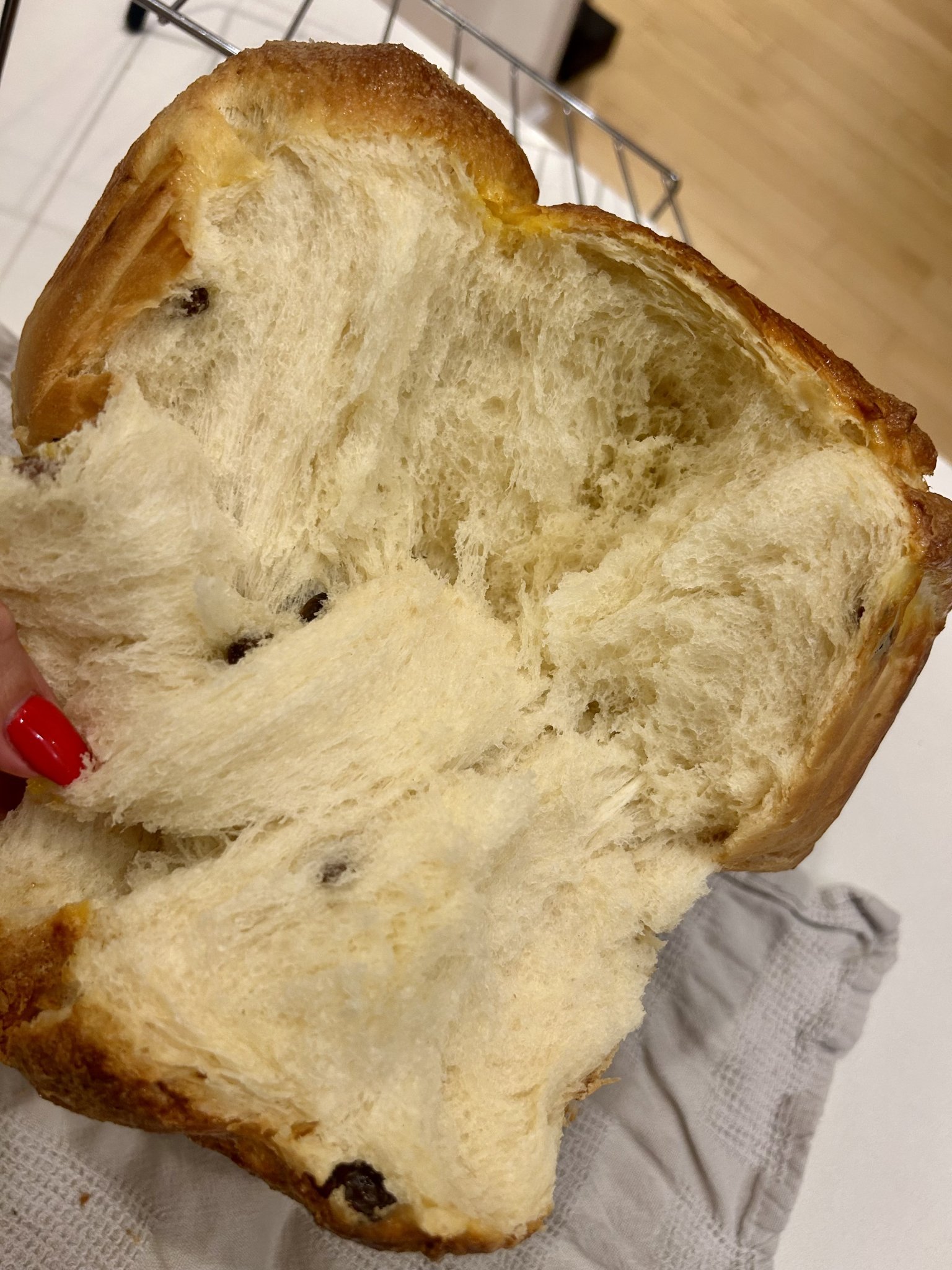 Чета ви интензивно, днес направих и аз козунакът на Морена с трите втасвания, само с масло и олио, обаче обърках, говорейки по тел. и сложих мазнината цялата в началото при забъркването на тестото.Втаса си супер и резултатът за мен е чудесен: мек, влажен, не много сладък: