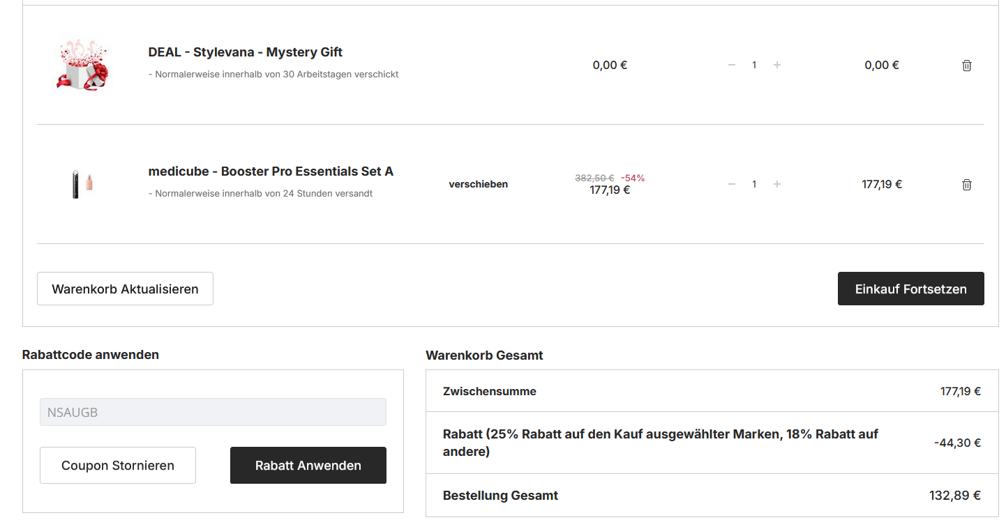 Ако е първа поръчка, пробвайте 1STBEAUTY -15%, а вторият код ще даде -5%.