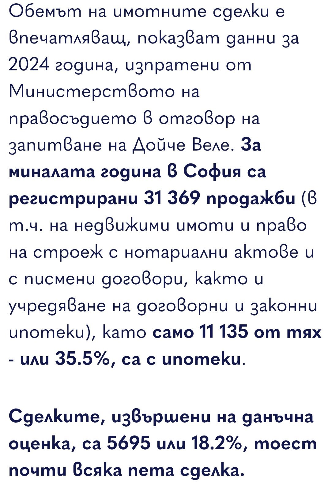 Всеки път когато някой тук във форума говори за продажба, го питат, какви планове има да намести парите от продажбата иначе “щели да стоят и да се обезценяват”. Как пък не светва лампичката, че от тея 31 хил сделки, тези които са с кеш или частично с кеш, вероятно хората там са продавач и след това купувач. Голям е шанса над 60% от сделките да са във вътрешен кръг хора, които си препродават един на друг.