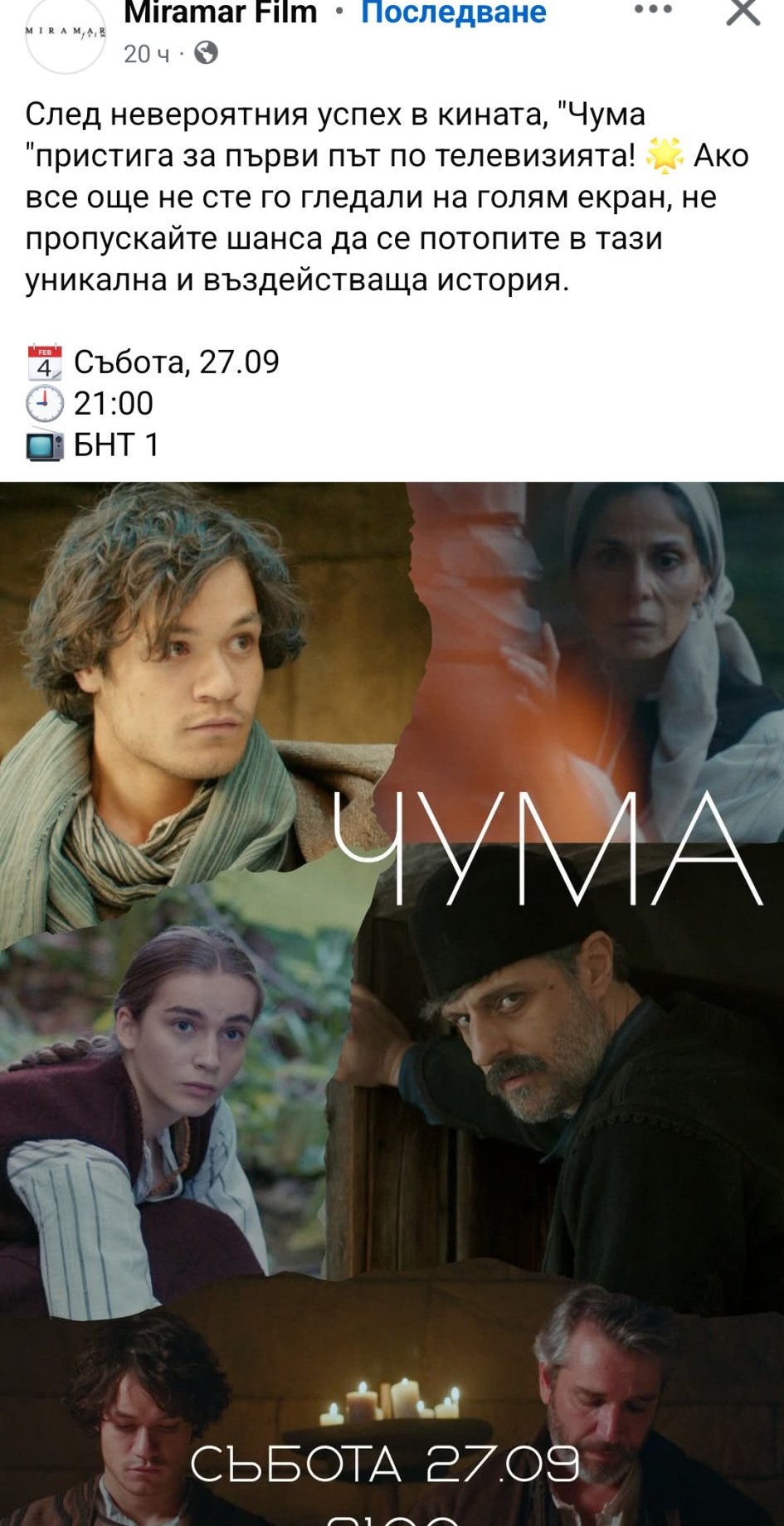 Тази събота от 21 : 00 ще дават " Чума " . Най накрая да го дават и по Тв.