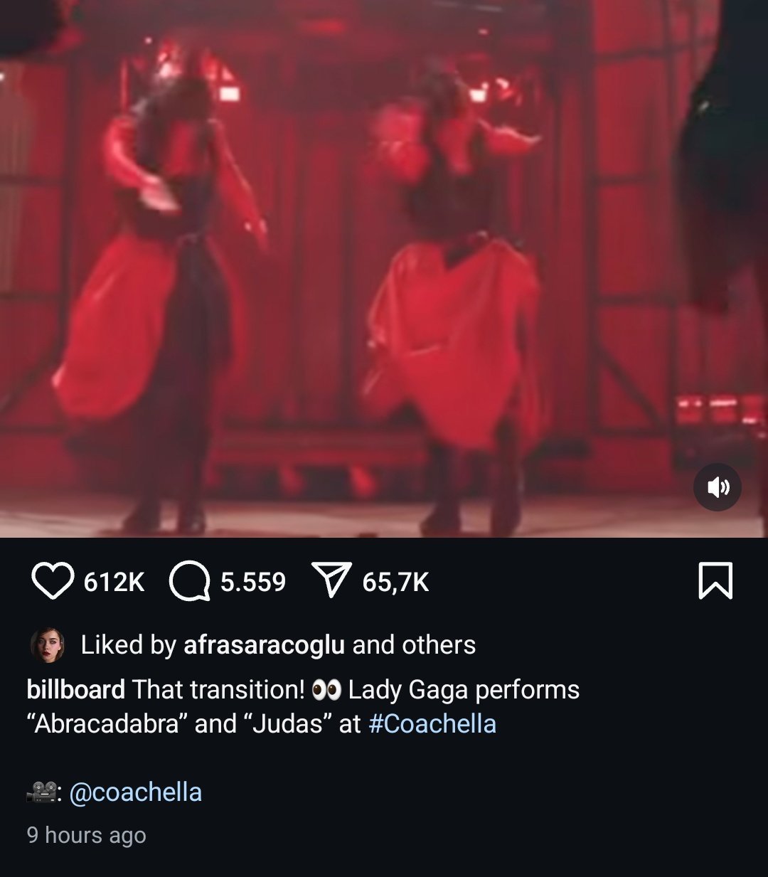 Афито е лайкнала пърформанса на Лейди Гага на фестивала Coachella. Чудят се дали не е там.