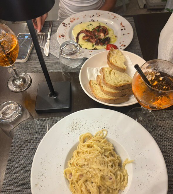 Хапвахме паста, октопод  и тирамису .
