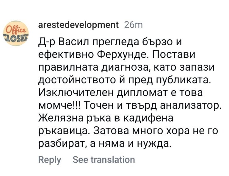 Харесах много този коментар от профила на "Ергенът" в Инстаграм, за Васил и поведението му спрямо "Ферай глупост до безкрай" -