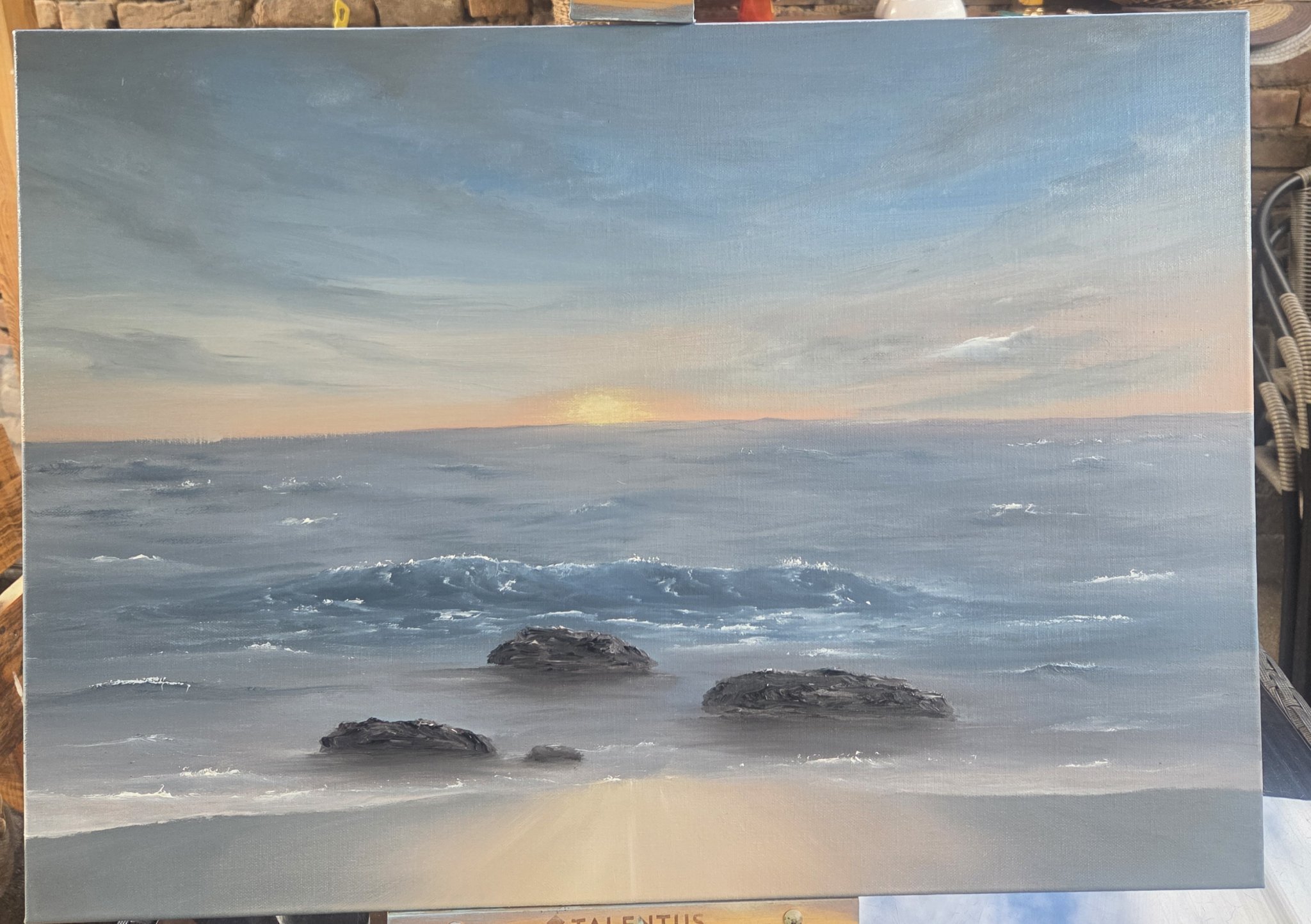 Ако може да предложа - близкият план би трябвало да е в студен цвят, щом далечината е топла. И пяната също хвърля сянка.