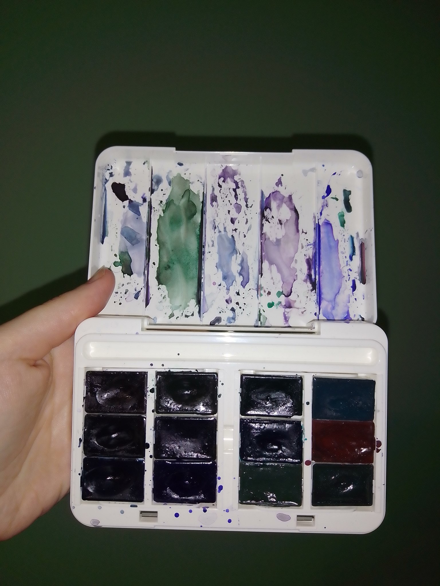 Моята палитра е с тъмни цветове, но аз знаех, че е такава - имената им са все някакви мъгли (имам предвид буквално - думата "мъгла" е включена в името на повечето цветове). Ето защо преди писах, че ми е трудно да различа кое кое е в палитрата: