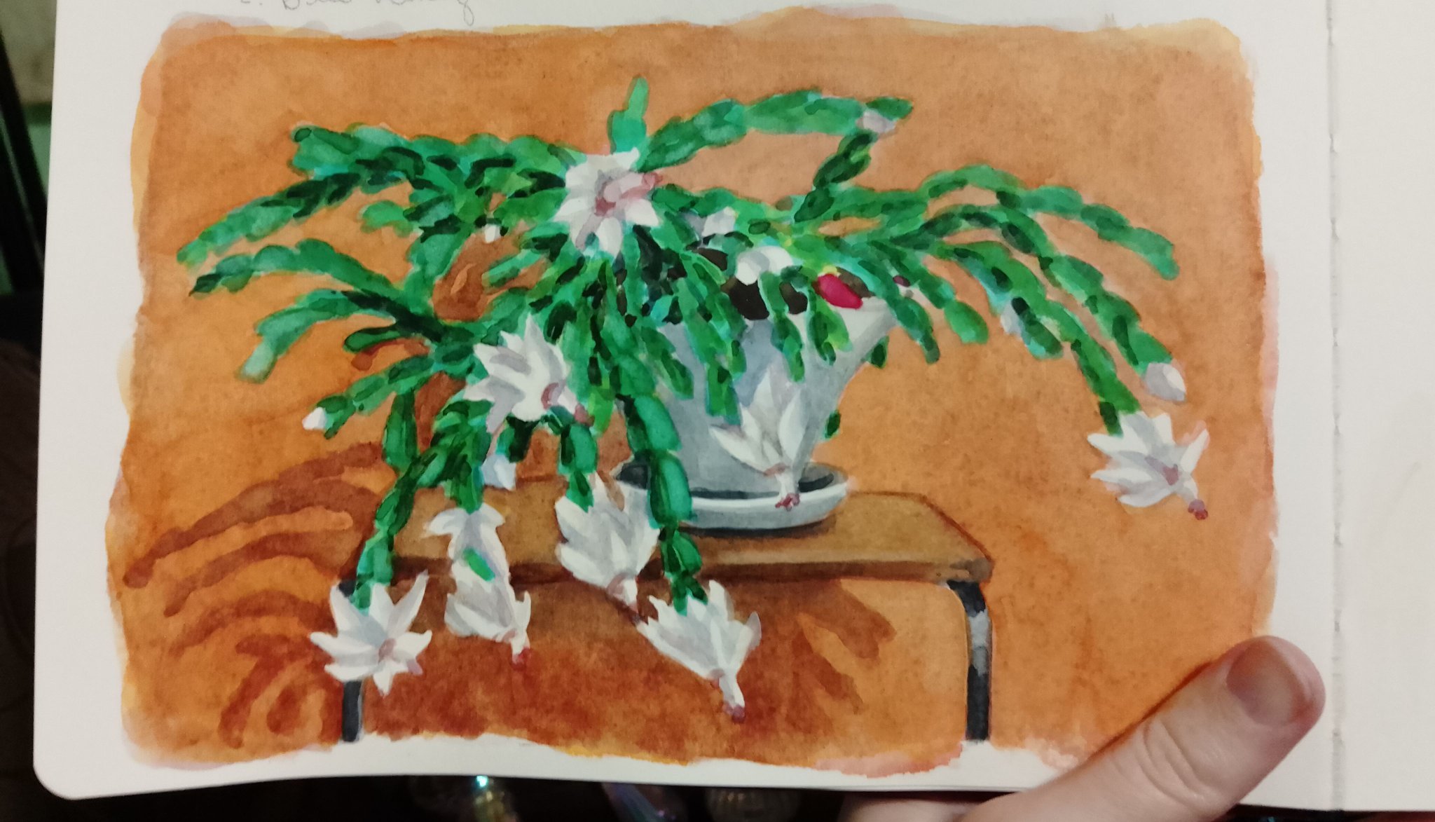 Опитах да си нарисувам коледничето, но стана малко бъркотия. Нищо де, все пак е скечбук, не е голяма картина: