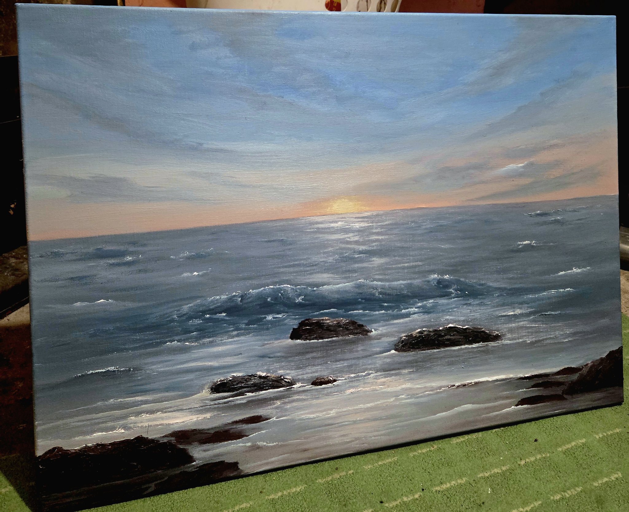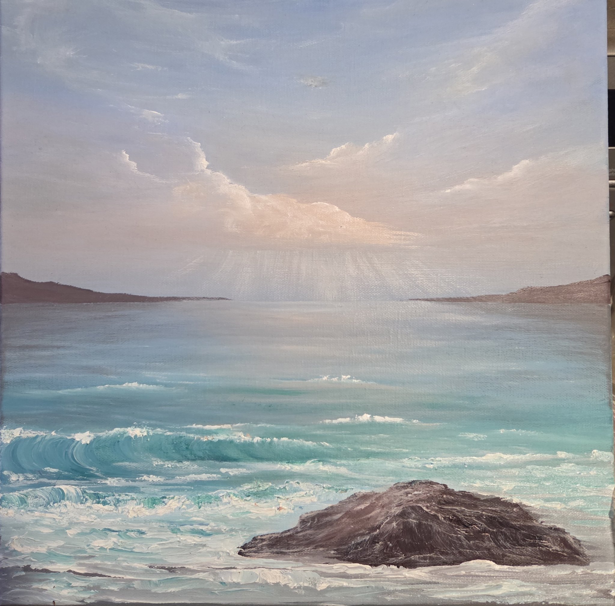 Благодаря, днес мъжът ми я беше сложил на един прозорец и аз седя и я гледам, зад нея влиза светлина и я осветява на определени места. И си казах - тук трябва да вкарам малко сяветлина и контраст. Небето не съм го бутала,. В предните части на морето правих корекции.