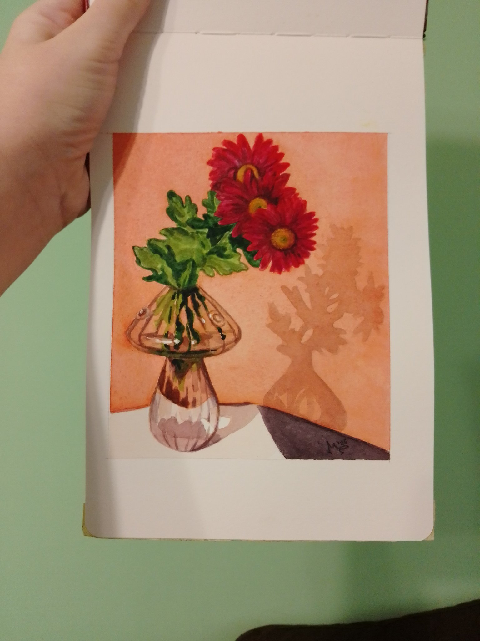 Продължавам да попълвам скечбука - хризантеми в гъба: