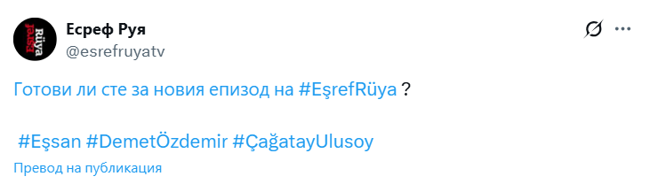Лоши новини сполетяха феновете на сериала Eşref Rüya, в който участват Демет Йоздемир и Чагатай Улусой.