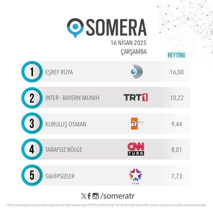 Eşref Rüya стана най-обсъжданият сериал в сряда през целия ден, като беше обект на 47 800 споделяния в социалните медии.