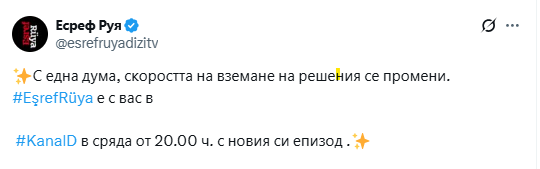 Аз още не съм изгледала новата серия на "EşrefRüya", може и тази вечер да го направя и утре ще се включа с коментари.
