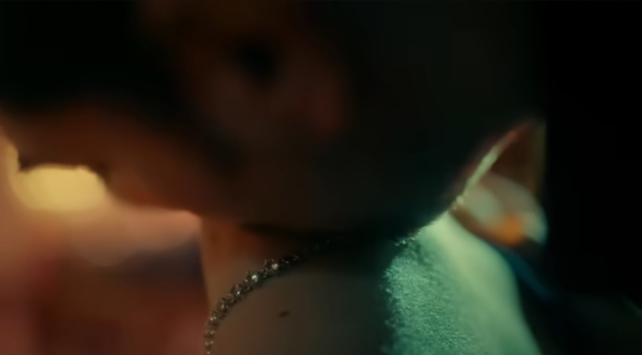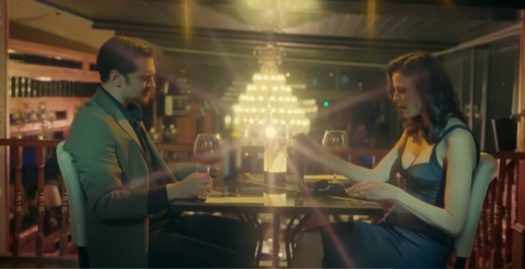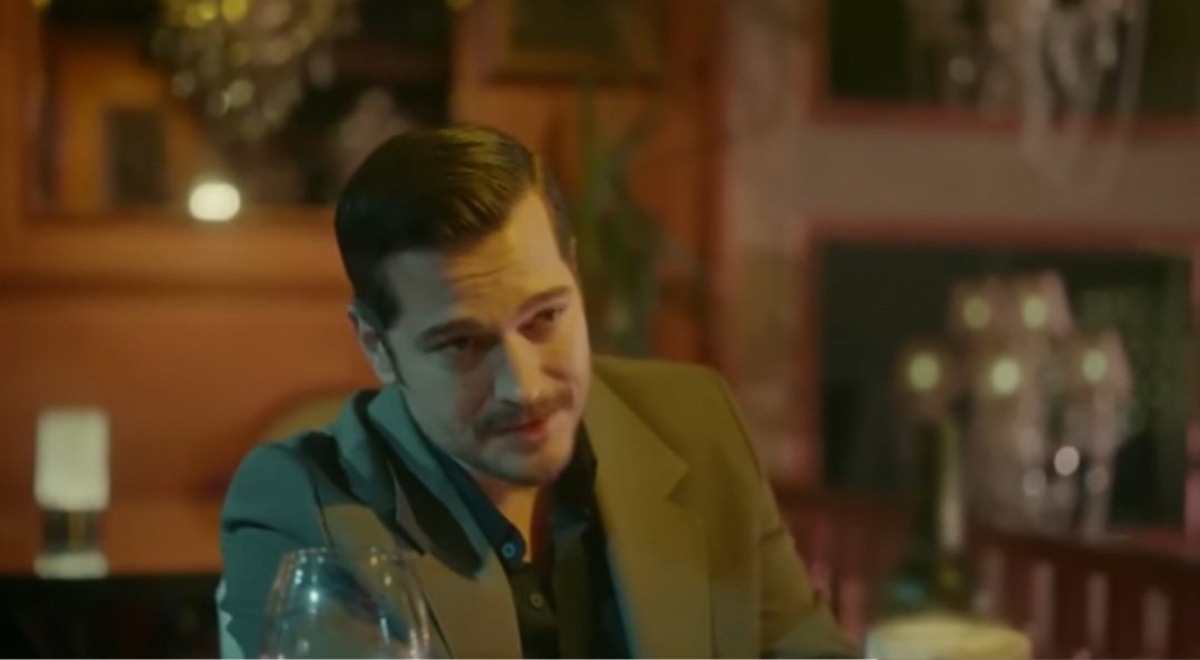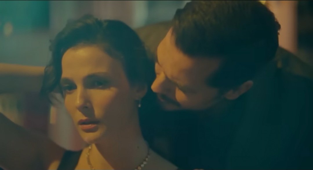 На пръв поглед сцената между Ешреф и Чийдем изглежда като елегантен, почти интимен момент-вечеря, смях, нежен жест с огърлицата и целувка по врата.