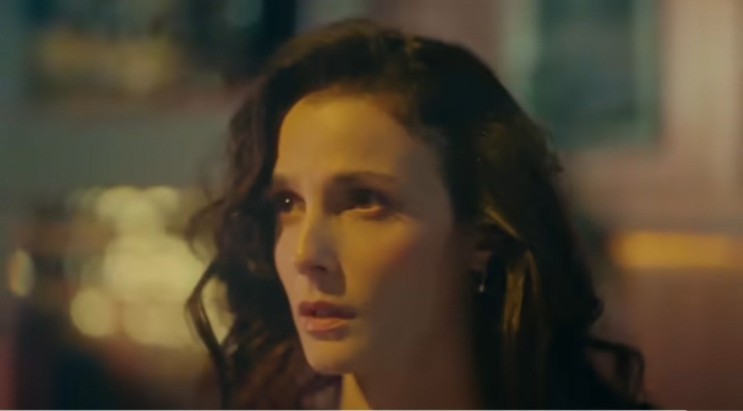 Погледът и е замръзнал между страх и тъга, като човек, който осъзнава, че моментът на истината е настъпил, но още не знае точно какво точно ще се случи.
