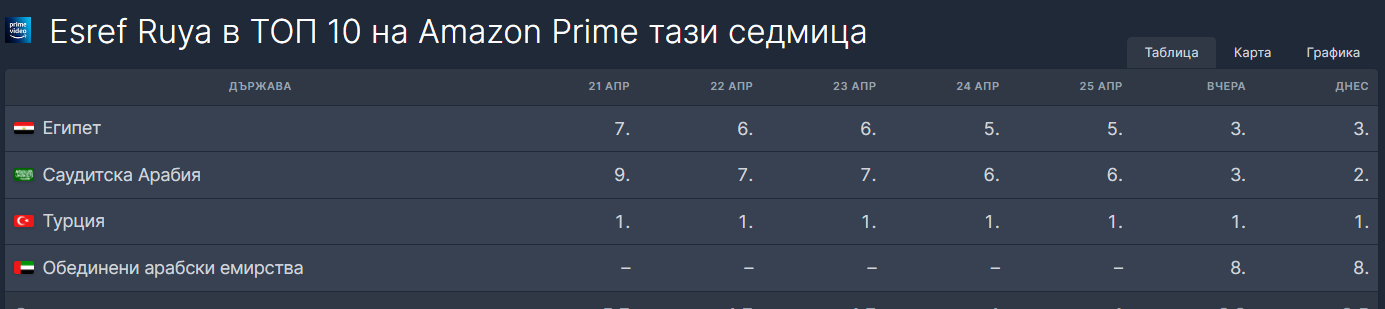 ТОП 10 на Amazon Prime в Турция на 27 април 2025 г