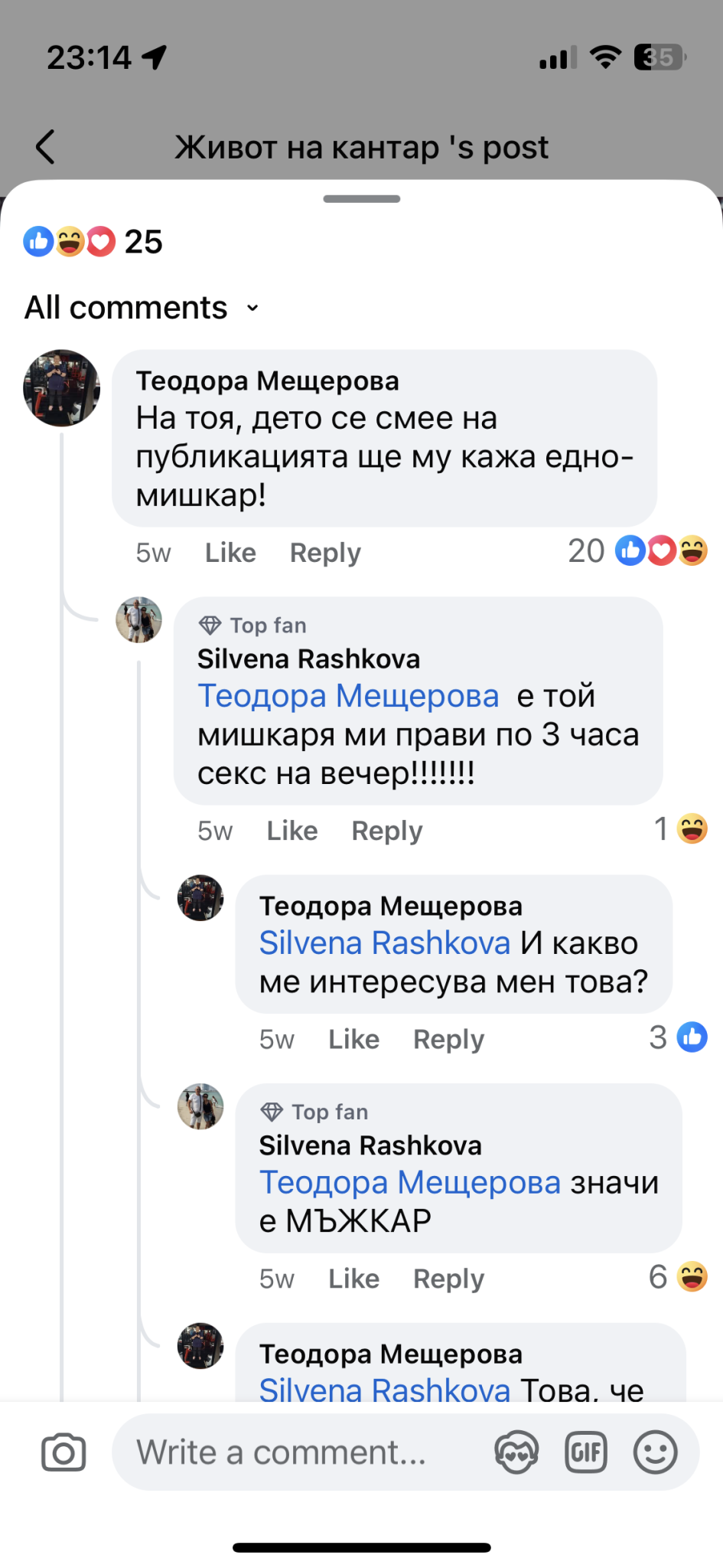 Джасте, понеже пита за коментарите на Деян и и жена му. Под една снимка на Вили П се беше развихрила една дискусия: