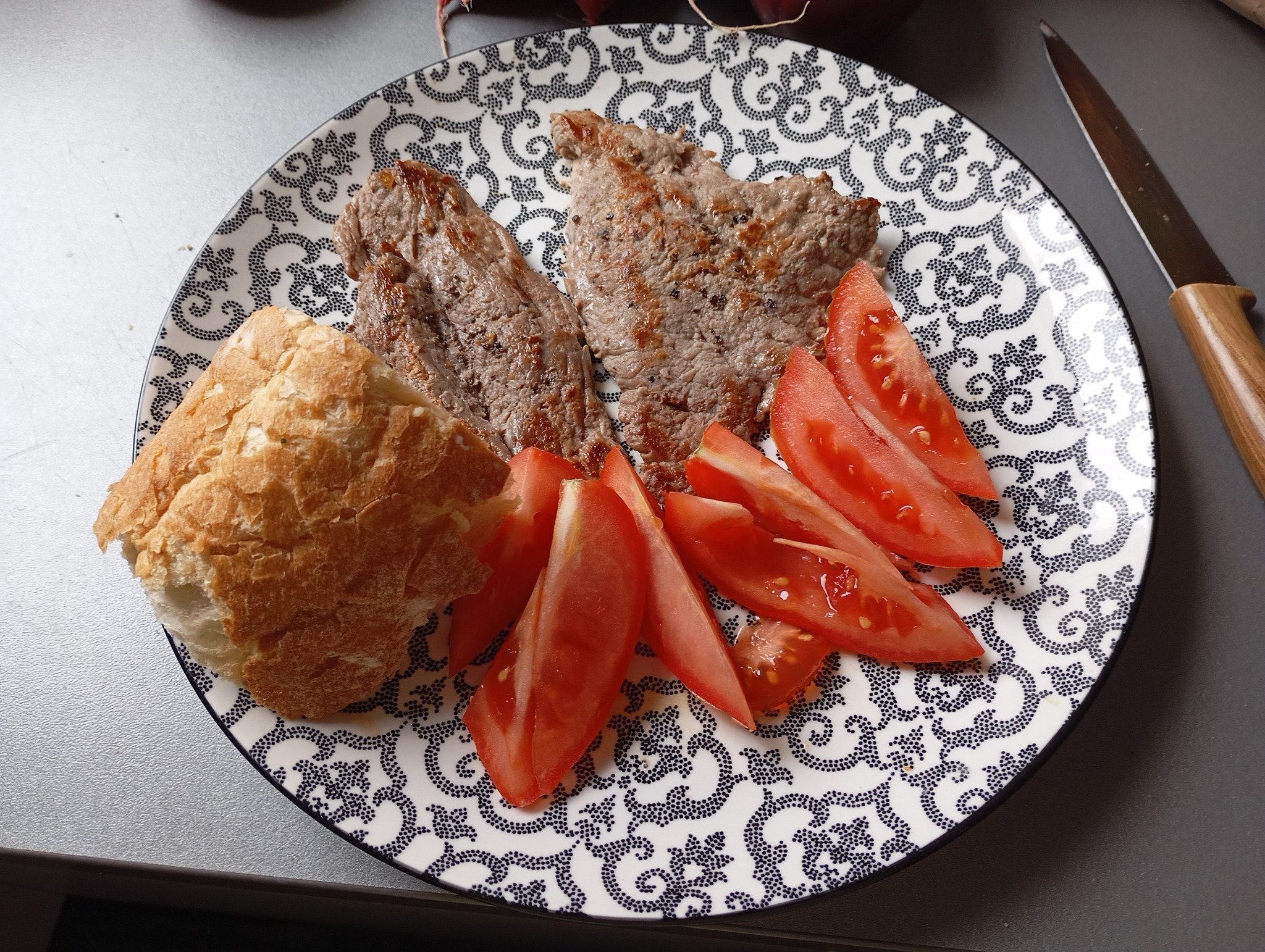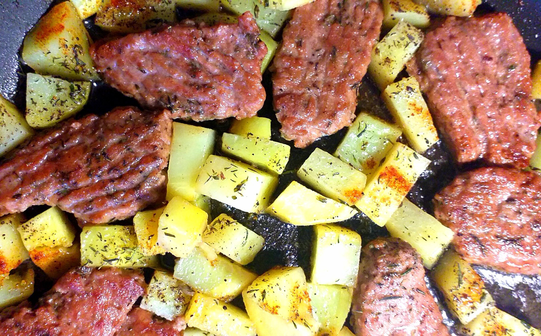 Вечеря ,, кюфтенца"( с вилицата гребнати и леко притиснати- бързо и чисто) и картофи соте: