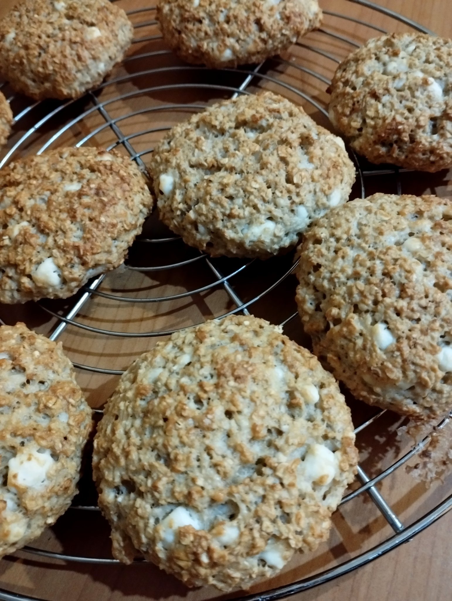 Получиха се 10 бр доста плътни питки/ бисквитки (и тежки). Добавих супена лъжица ленено семе и супена лъжица кокосово брашно (от него сладнят).