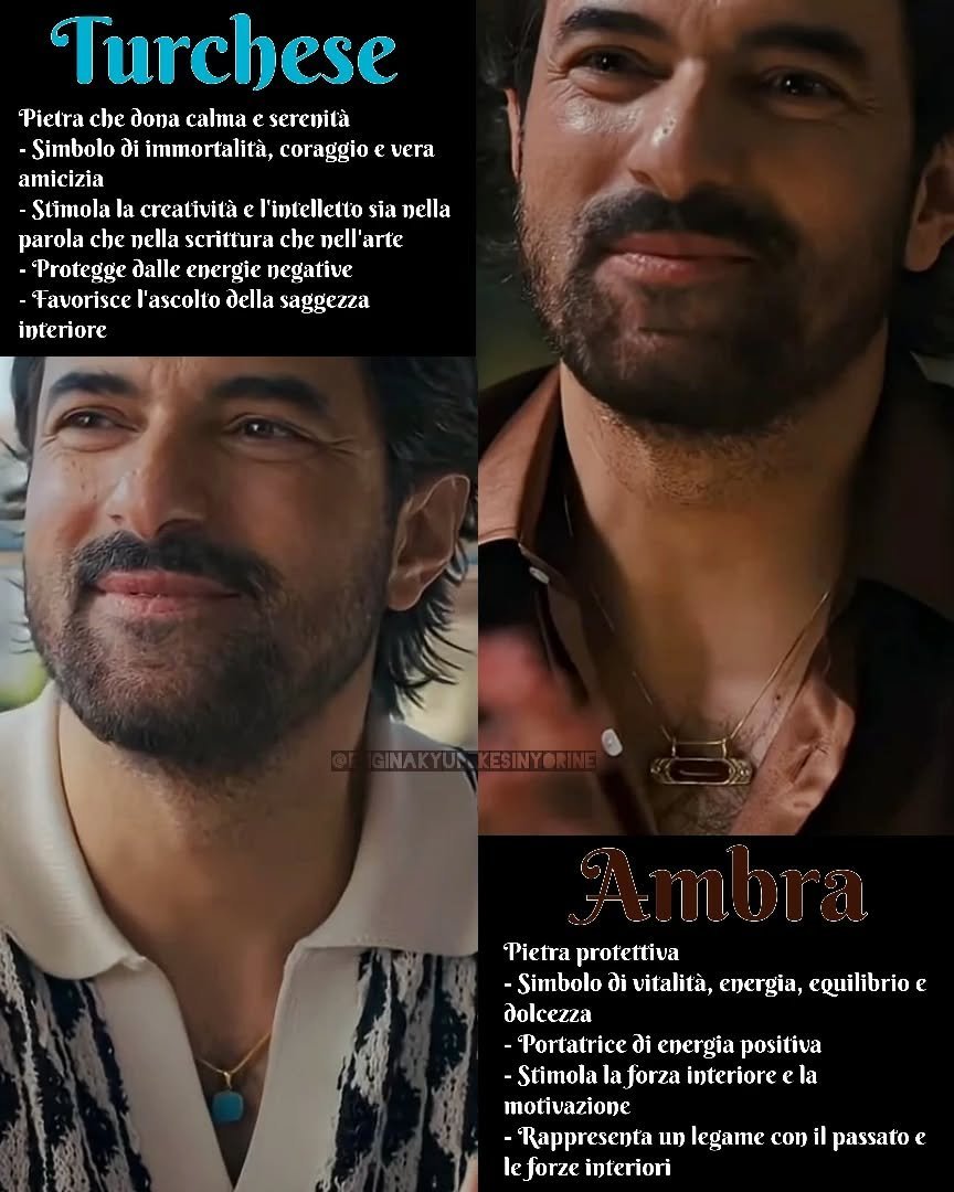 Камъни, като съкровища на Изтока, които добавят чар и мистерия към тази романтична история и със сигурност два цвята, които подхождат на @enginakyurek ...тюркоаз, който ни напомня за морето с цялото му отражения и място, толкова обичано от Енгин... и кехлибар, който ни напомня за отраженията на цвета на очите му, когато слънцето огрява лицето му...