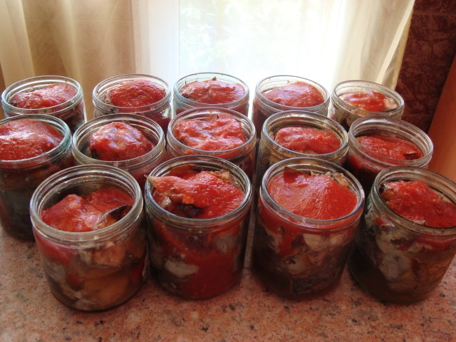 Като поизстине се нарежда в бурканчета и се залива със соса от печенето.