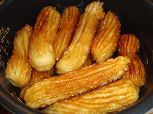Всяка толумбичка още с изваждането от врящата мазнина потапяме в приготвения от