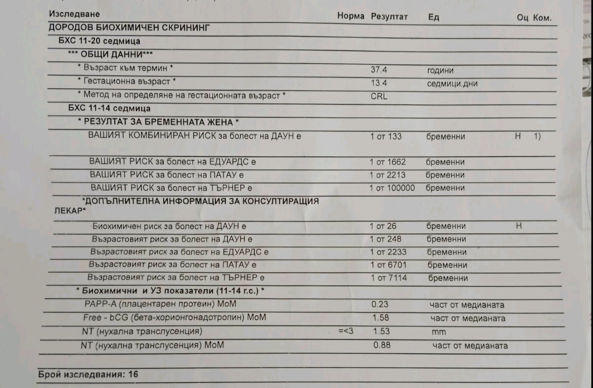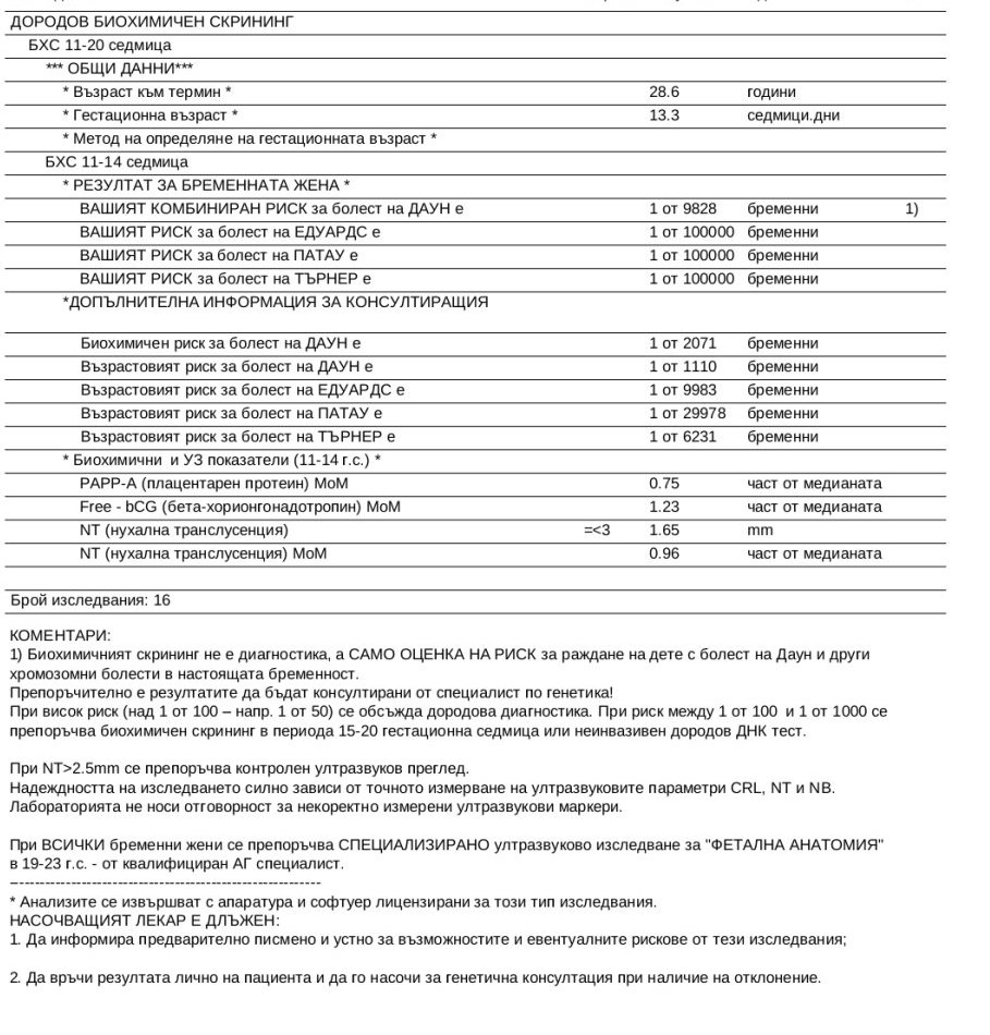 Добри са резултатите. Има изчислен нисък риск за някои от синдромите.