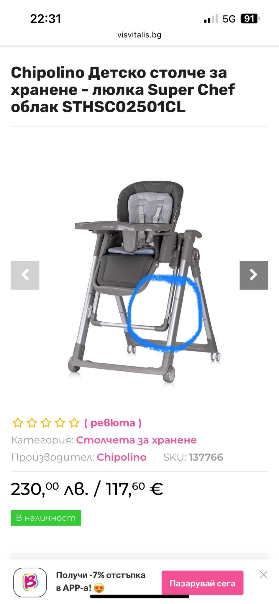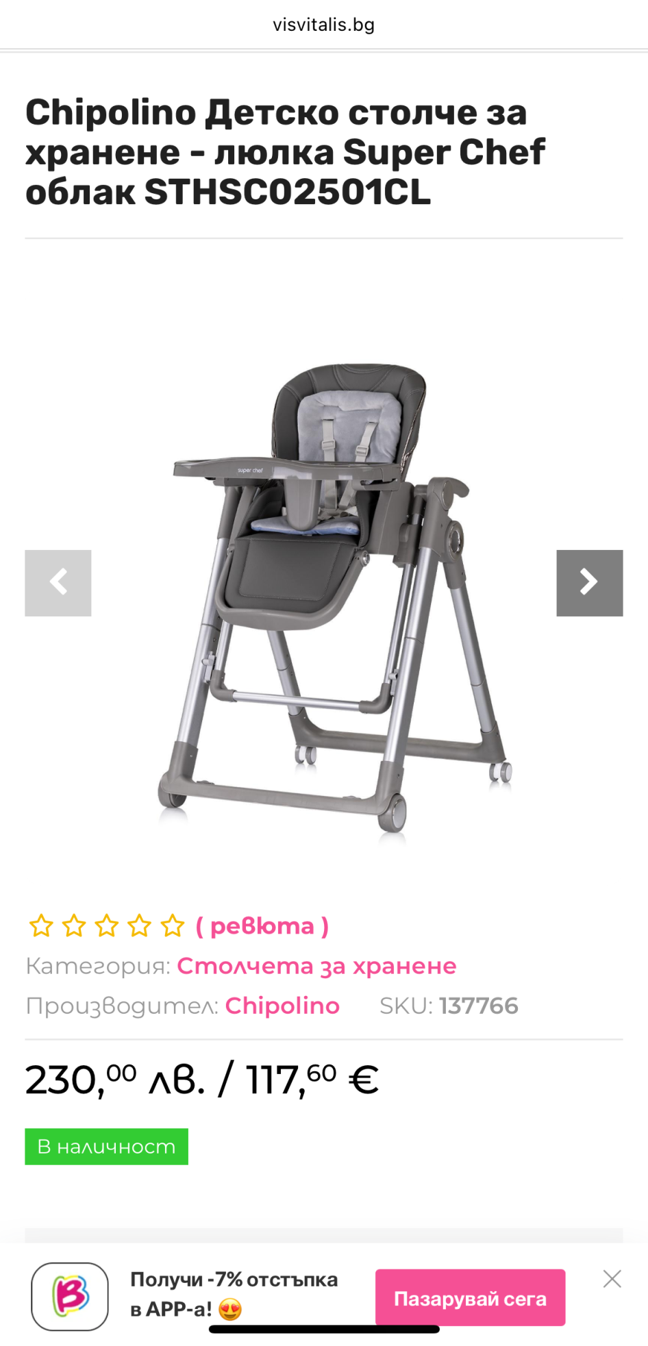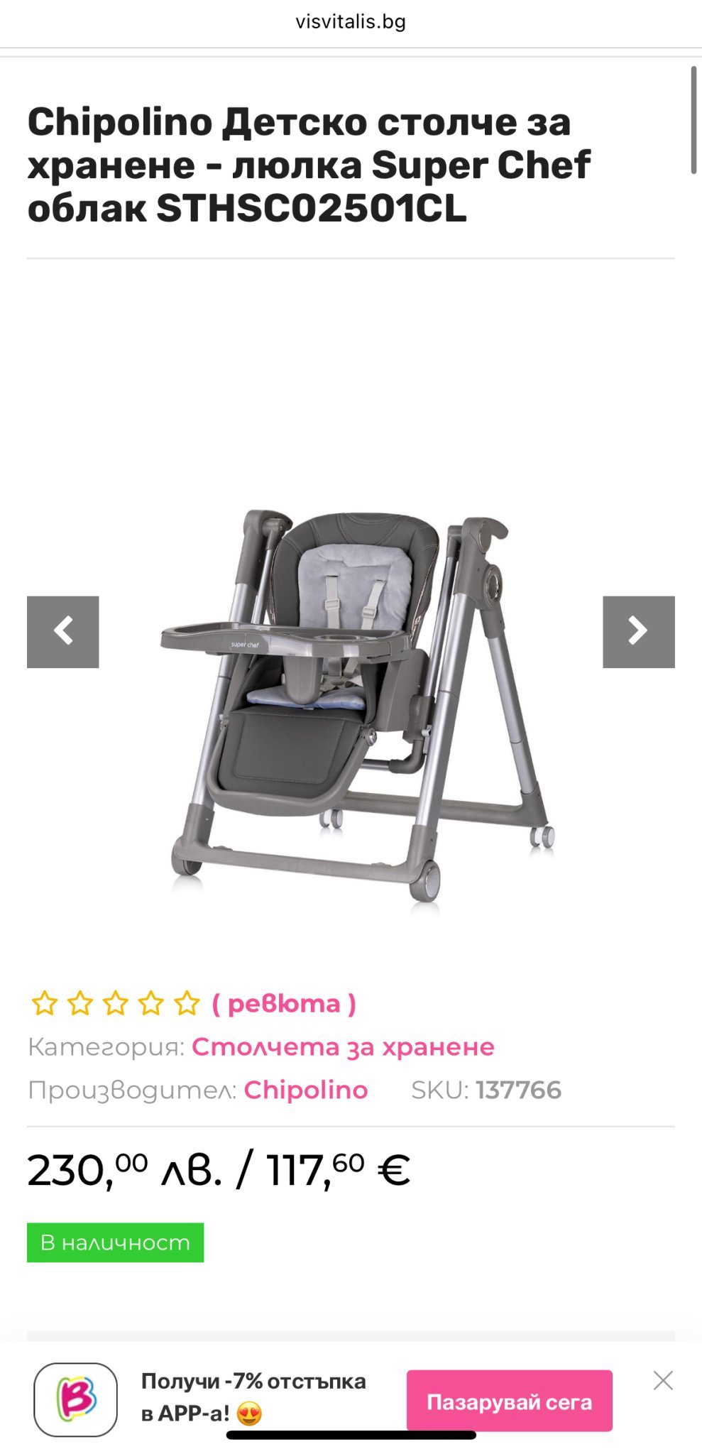 Имам точно същия, доволна съм, не съм ползвала люлка частта, пробвах, но ми отказа господинът (като пробвах вече беше 4+ месеца). Имах излишни от велкро лепките с катамарани от шейн, взех едно банерче и си направих и кошница за лигавници и кърпички. Коланите ги махнах и сложих таблата, защото засега не го оставяме без пряко пред него да има възрастен, като на другите столчета са и генерално не ми харесват коланите на столчетата, не е проблема в конкретните колани. Хубав стол, бих взела от моделите с кошница отдолу, но тогава този беше намален на 180 (единична бройка в озон). Изчистен е и не е кич/цигания. Лесно се мие. Не е лоша покупка. Виж в озон, в момента има там бройка за 195.