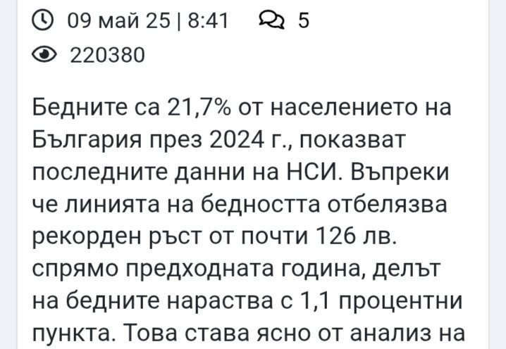 Това са само тези под линията на бедността. Другите, които са малко над нея като прибавиш, сигурно процентът става съвсем сериозен.