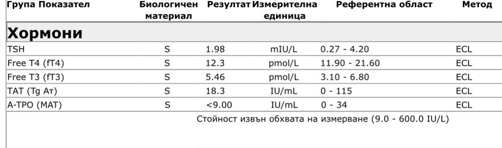 Назначи ми фертилити тест, цветна снимка, лапароскопия и хистероскопия. Буквално стоях като ударена с мокър парцал и не знаех как да реагирам на всички тези новини. Попитах го и за ТСХ-то ми — преди месец беше 3.61, а сега е 1.98. Той каза, че явно има пикове и спадове, и че трябва да започна хормонално лечение, за да го държа ниско.