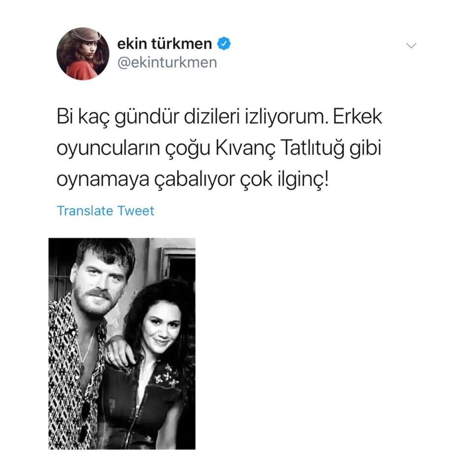 Турската актриса Екин Тюркмен, която се снима заедно с Къванч Татлъту във филма "Организирани дела 2" в своя профил в Twitter написа: " Гледам сериали вече няколко дни. Интересно е да се отбележи, че повечето актьори - мъже се опитват да се държат като Къванч."
