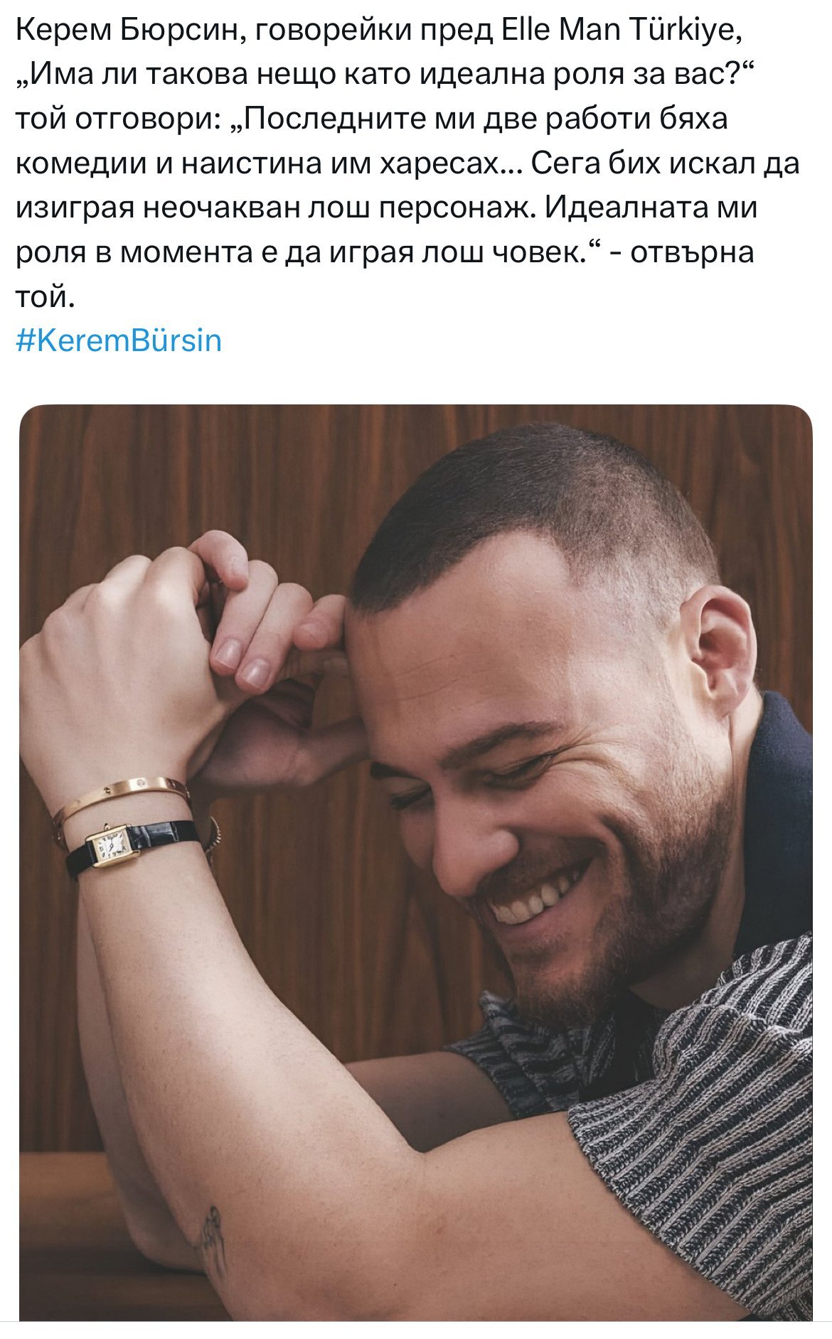 Керем Бюрсин, говорейки пред Elle Man Türkiye