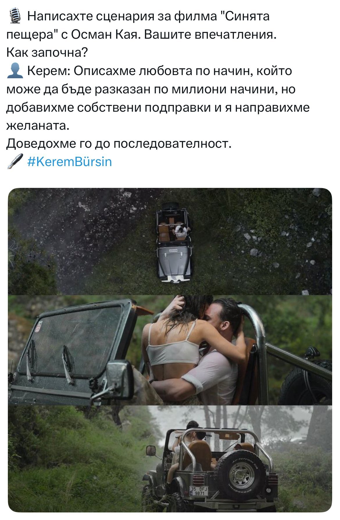 Беше невероятно преживяване... Процесът на писане и съвместната креативност според мен са най-приятната част от работата - защото всичко, за което мислиш, е на тези страници и след като си го написал, вече всеки може да влезе в този свят. Чувството да имаш власт над света, който си създал, да си в него и да изпитваш емоциите, които обсъждахме на снимачната площадка от дни, беше невероятно емоционално и сюрреалистично. С Осман пишем заедно от много години. Когато ни помолиха да създадем любовна история за дигитална платформа, в „Синята пещера“ разказахме за любовта по наш собствен начин. С помощта на невероятния екип на платформата и нашия директор Алтан Дьонмез, доведохме проекта до крайния му резултат и наистина се насладихме на този колективен процес. Взехме история, която можеше да бъде разказана по милион различни начина и, като добавихме наши собствени „подправки“, я доведохме до желаното от нас състояние.