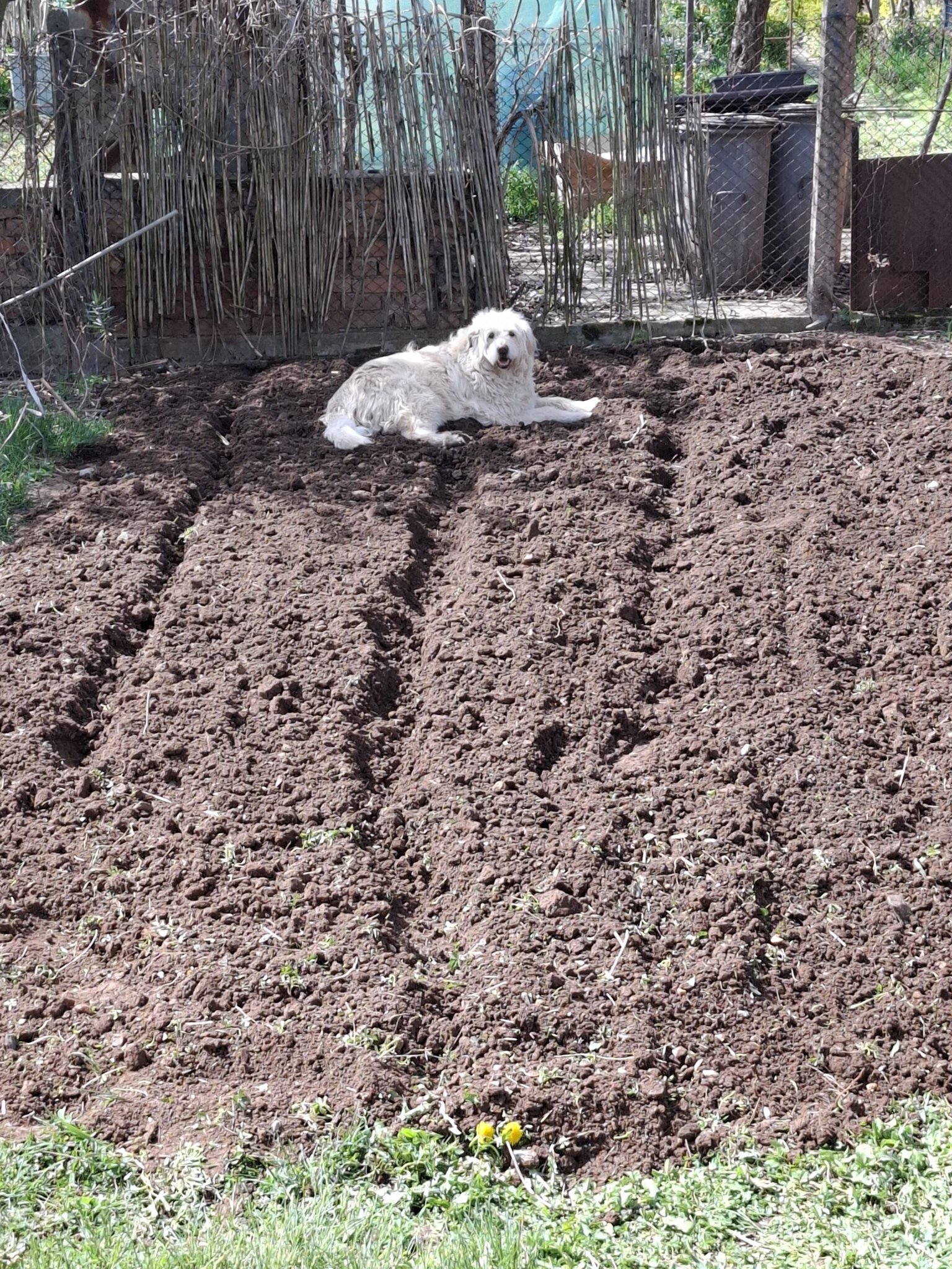 Попи днес е на кучегледачка и си изкарва страхотно. Зад нея си почива Майло, едно от приятелчетата й.