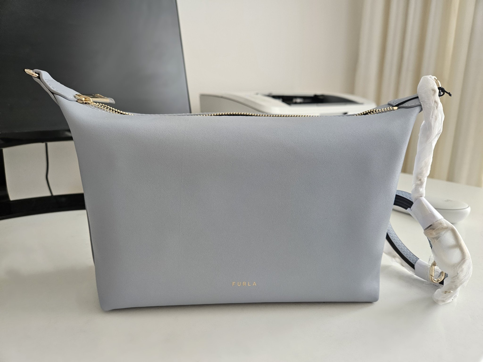 От там тотално ми се объркаха плановете за повтарящ се цвят и лесно да прежаля нея или Furla-та. А пустата Furla пък да се окаже най-хубава от трите, съвсем не го очаквах! Дойде си с целия лукс на марката, с разкошен цвят (между светло синьо и гълъбово сиво) и нея както мислех със сигурност да я връщам, така се оказа, че със сигурност ще си я оставя: