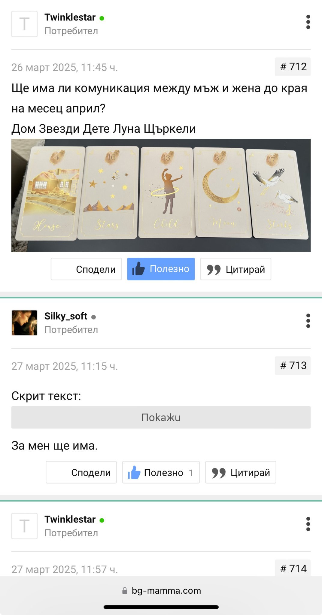 Отварям тема за тези уникални карти, убедена вече в абсолютната им категоричност да предсказват 👁