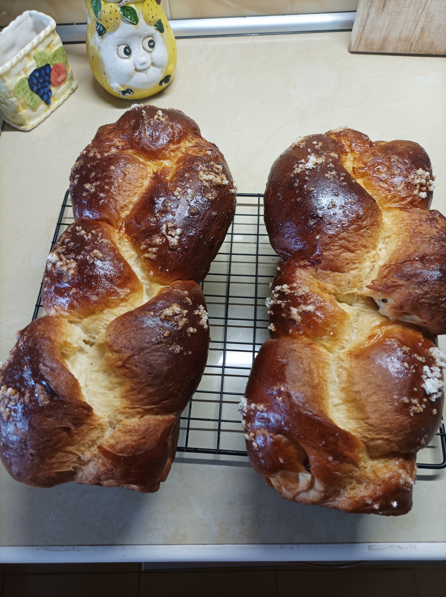 Аз до сега оправях прасарника. Наготвих само една супа от манголд и има разни неща за доизяждане. За довечера ще правя гръцка мусака с патладжан и тиквички. Вчера забравих да ви се похваля. Нали валя и беше студено, та чак парното пуснахме за малко и като ми дойде музата, та направих козунак. Без да се каня и специални подготовки. С каквото имаше, ей така на шега, а той все, че се получи. Хареса се и бързо се изяде, че малка доза бях забъркала, ей ги на, фук, фук 😂