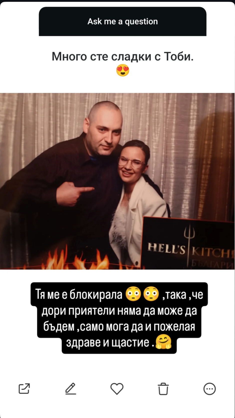 Тоби пък чак го е блокирала ?! Само тя ли не е разбрала, че всичко е по сценарий или Владов е решил да я сваля и извън предаването ..