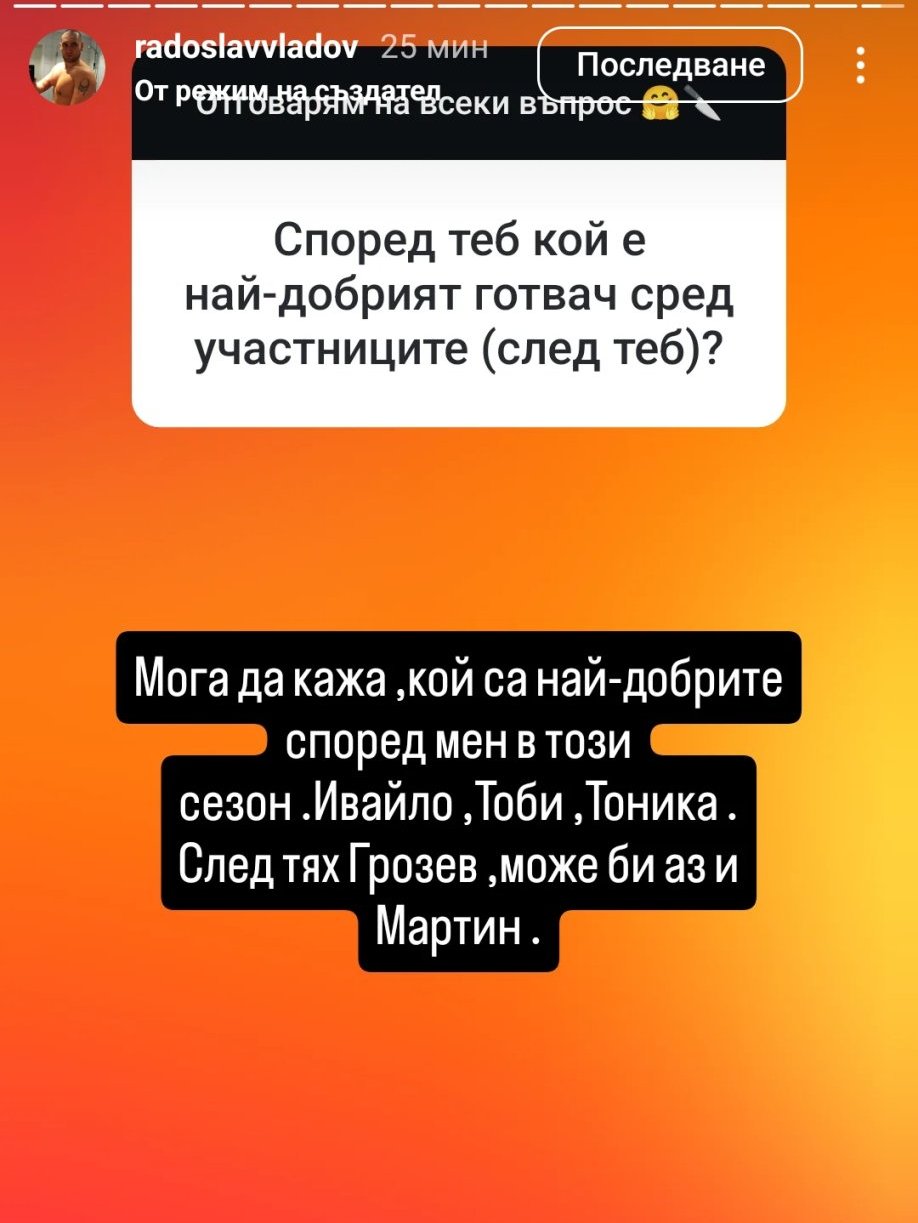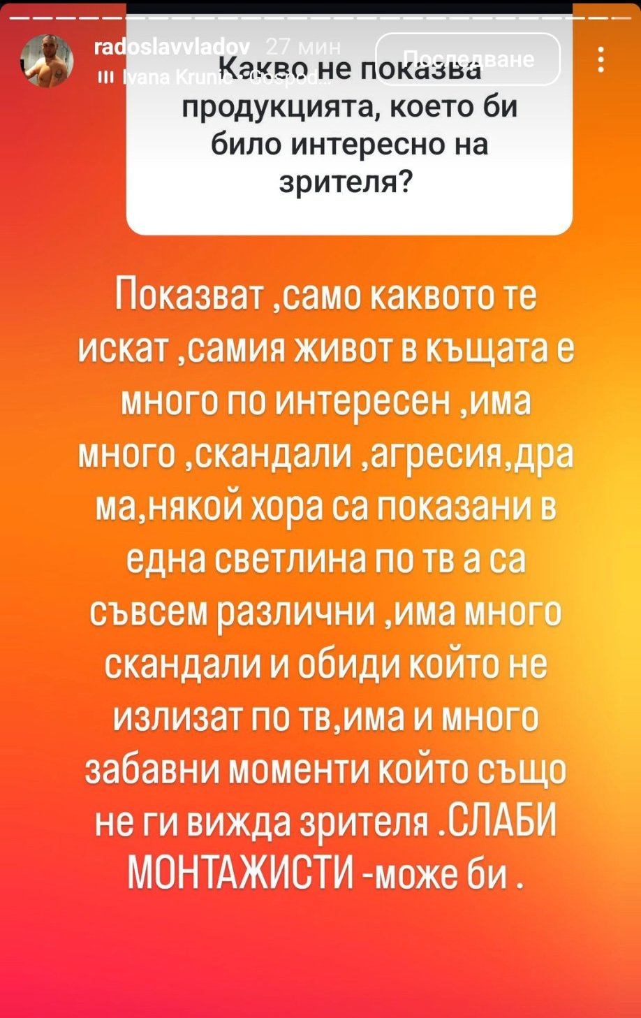 Владов е много по-интересен със сторитата си и това, което споделя в тях, отколкото беше в предаването.