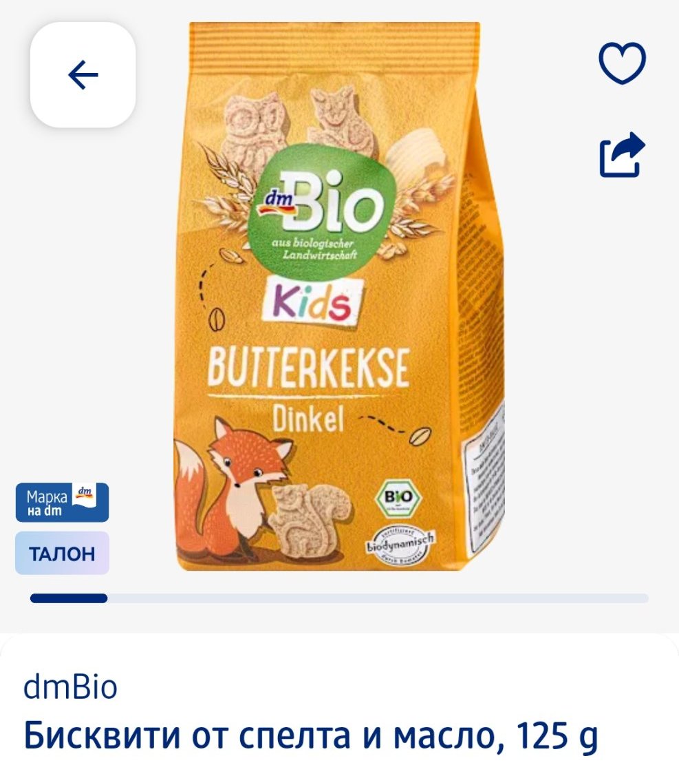 Аз използвам бисквитки на Бискидс на ДМ - не ми харесват, аз не бих ги яла. Слагам ги в киселото мляко за закуска. Преди слагах 2 бр., но от скоро  - 4 бр. Давала съм и бишкотите на Плазмон да гризе, когато е много нервна или да спечеля време докато й сготвя или се прибираме. Ами тия бишкоти са със захар, язък им за агресивната реклама. Веднъж й дадох моя бисквита на марката Zero. Тя пък е с подсладител. По-често й давам зрънчо от ДМ без сол или коричка хляб.