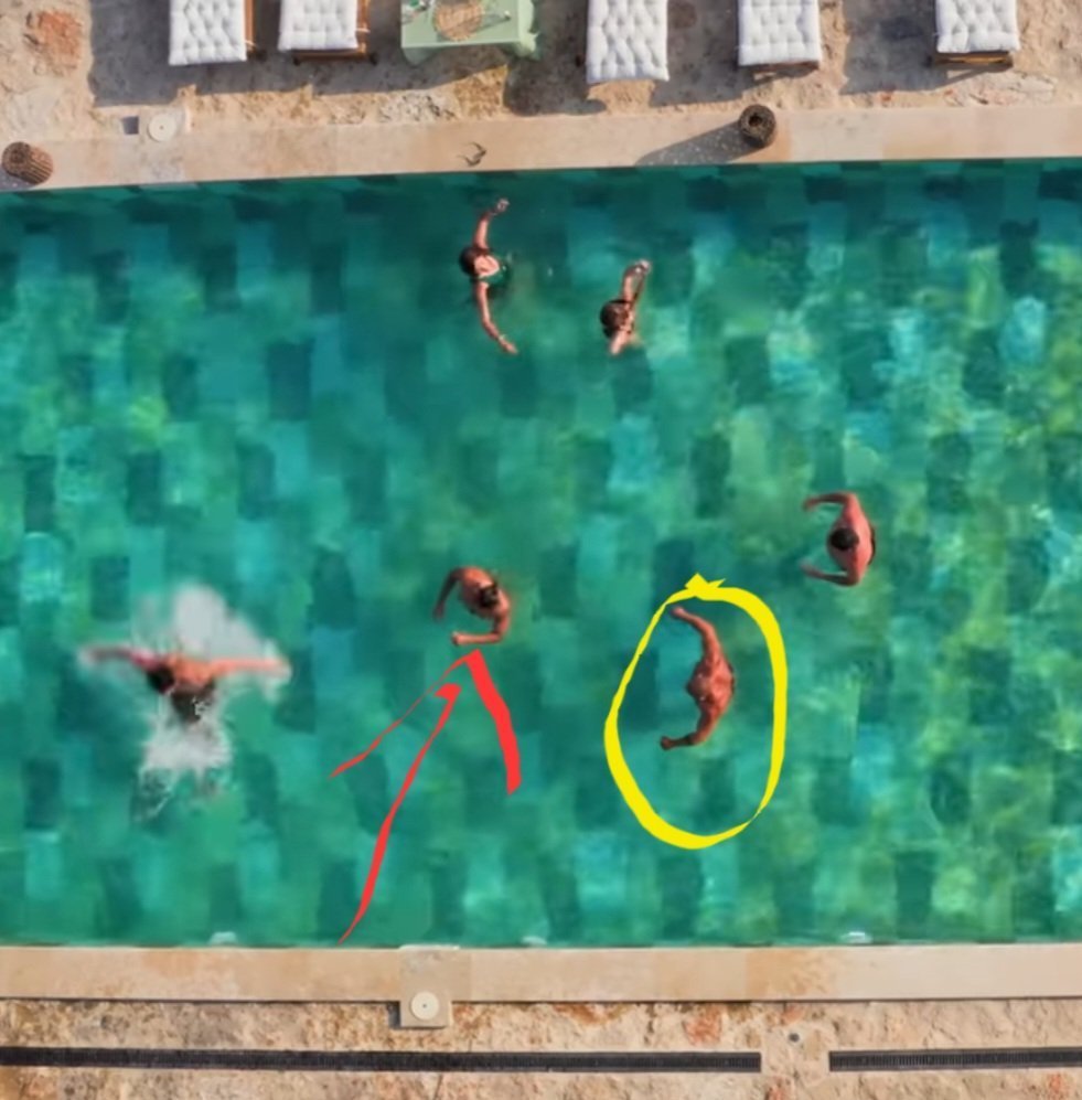 А този в басейна с татуировката не е Марсел, това е участник, който още не е влезнал.