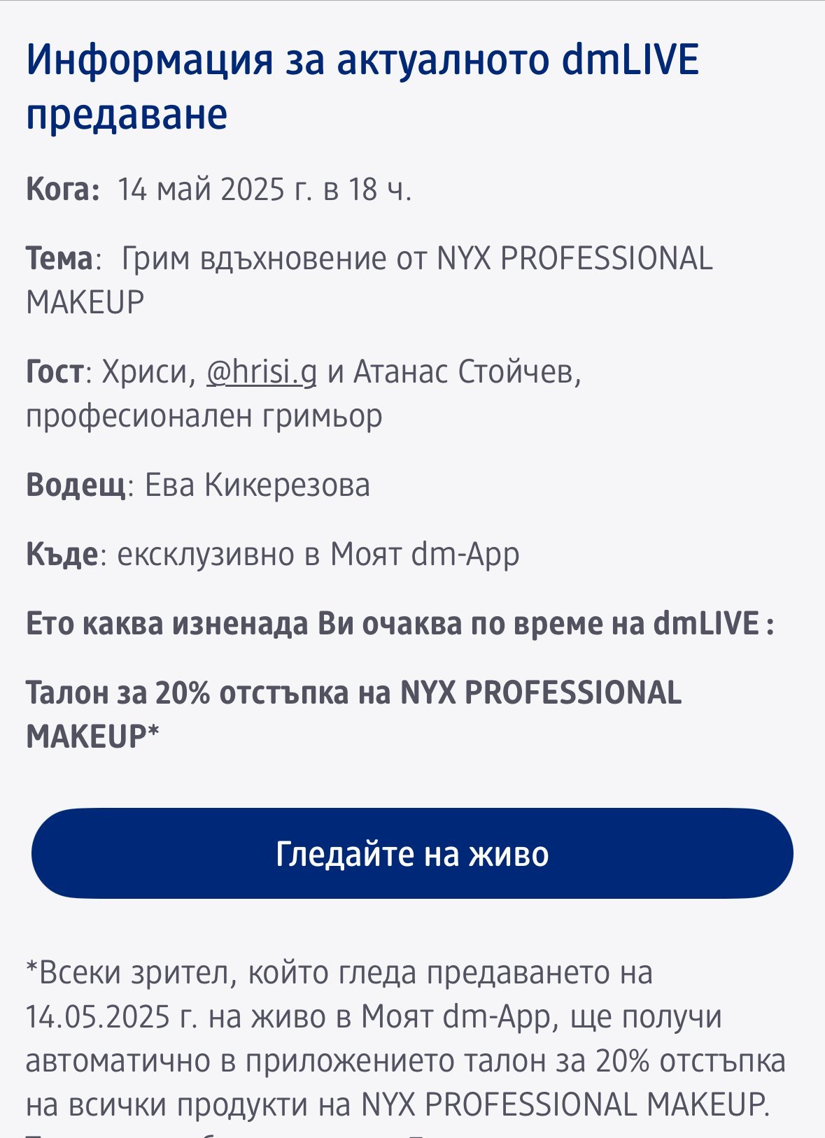На скрийншота под талона за Мейбълин има "dm лоялност" - там пише за програмата