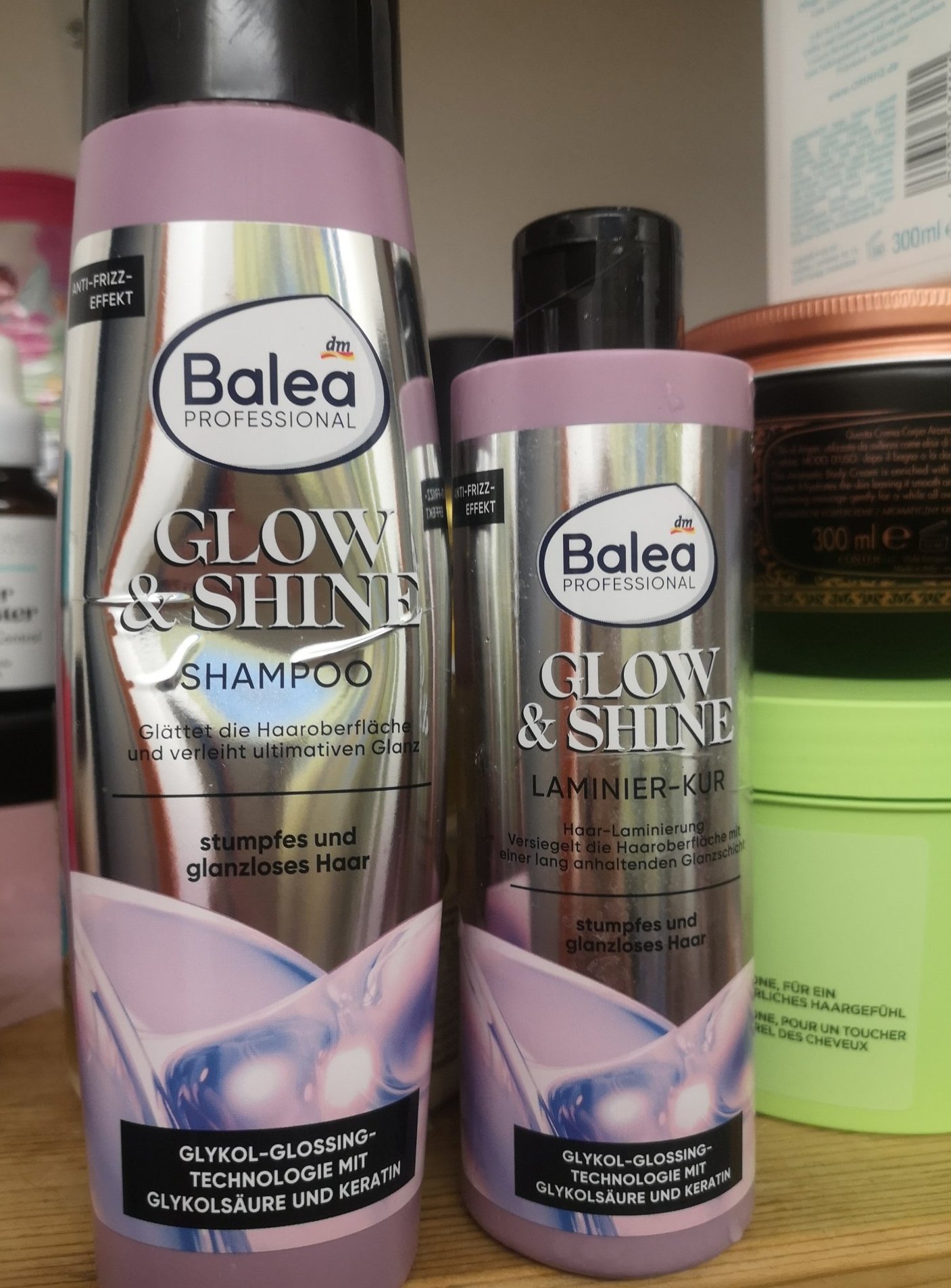 От серията Glow имам шампоан, балсам и ламинираща грижа. Спомних си. Има като че и маска 3 в 1. Само балсама не помня къде съм сложила или май го изхабих.