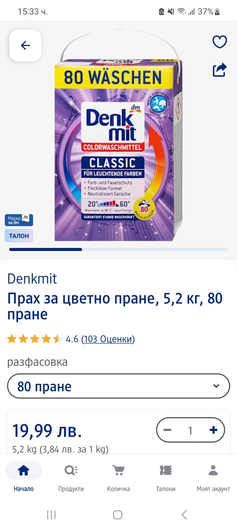 Цената е много, много добра, но у нас този прах не се хареса. Някак много твърд беше. Добре, че бях взела от малката опаковка за проба.