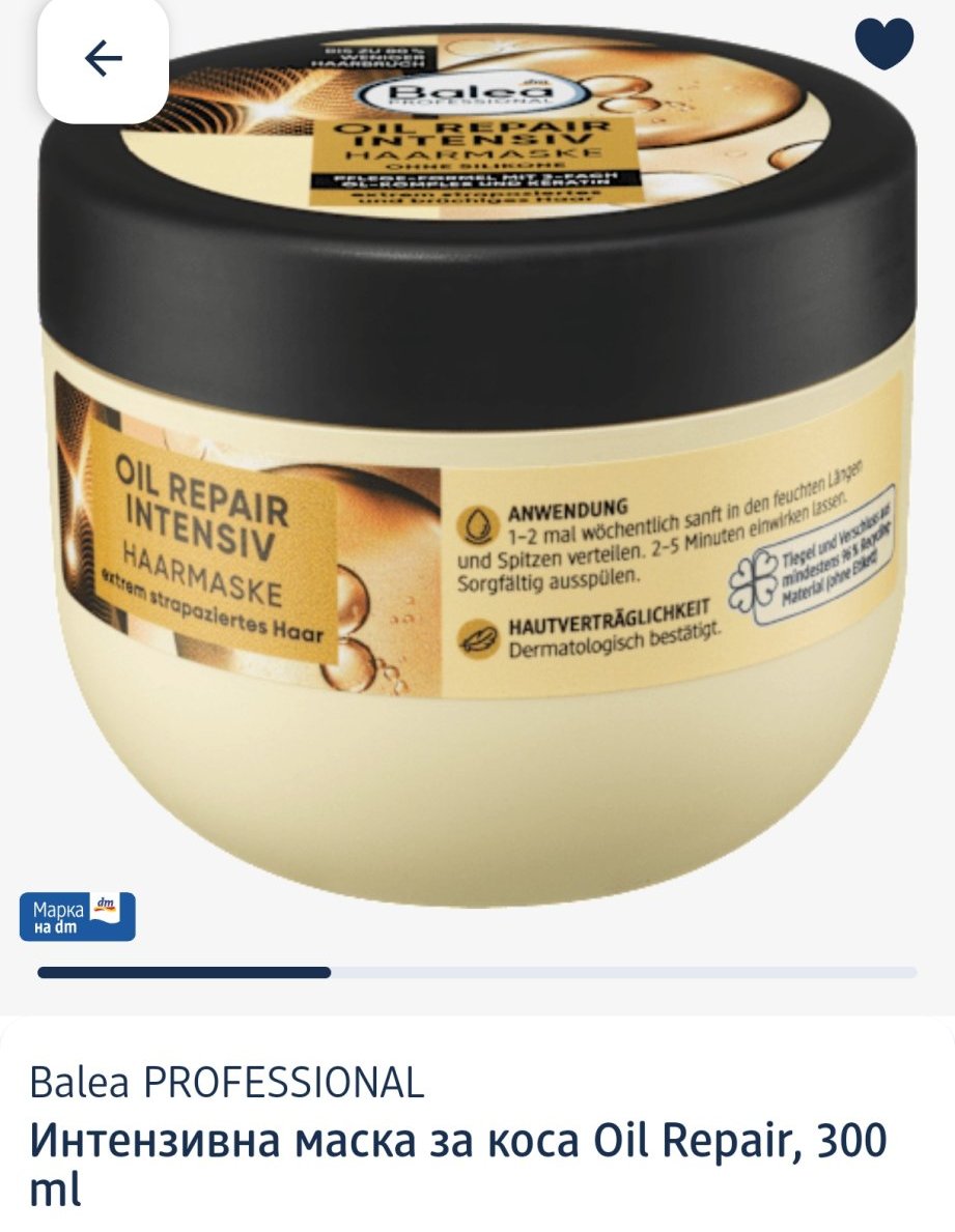 Tази маска също е доста добра https://www.dm-drogeriemarkt.bg/balea-professional-maska-aqua-3v … l#dm_bv_container.