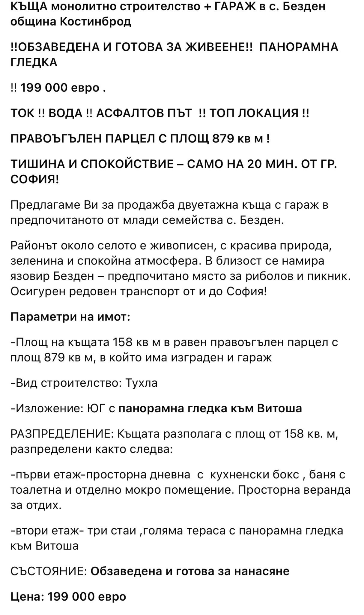 Какво мислите за тази къща в с. Безден? Не съм запозната с това село, има ли магазини, равно ли е? Пише, че е на 20минути от София.