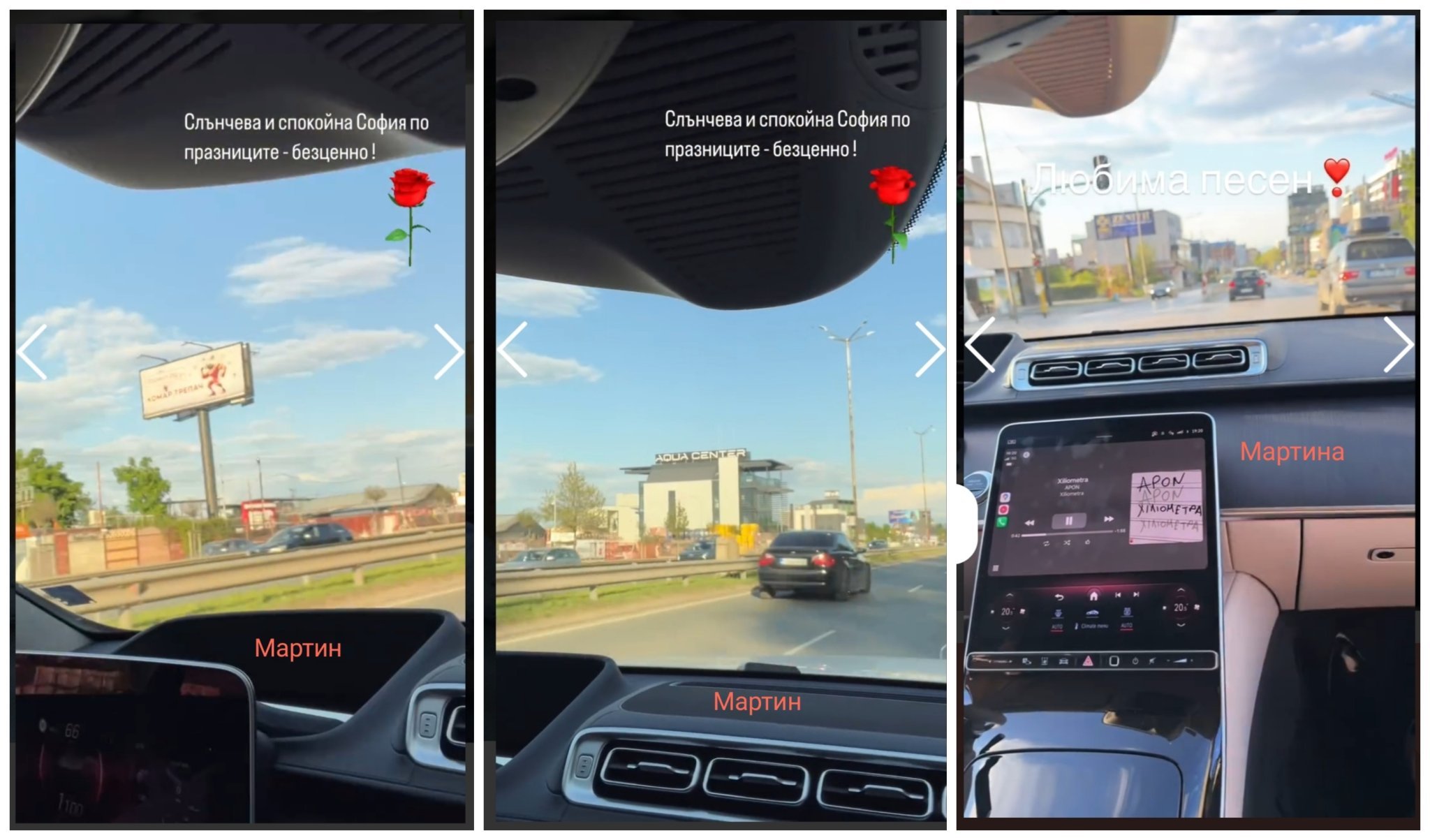 Мартина е пуснала стори от кола, мисля, че е от колата на Мартин. Sunglasses