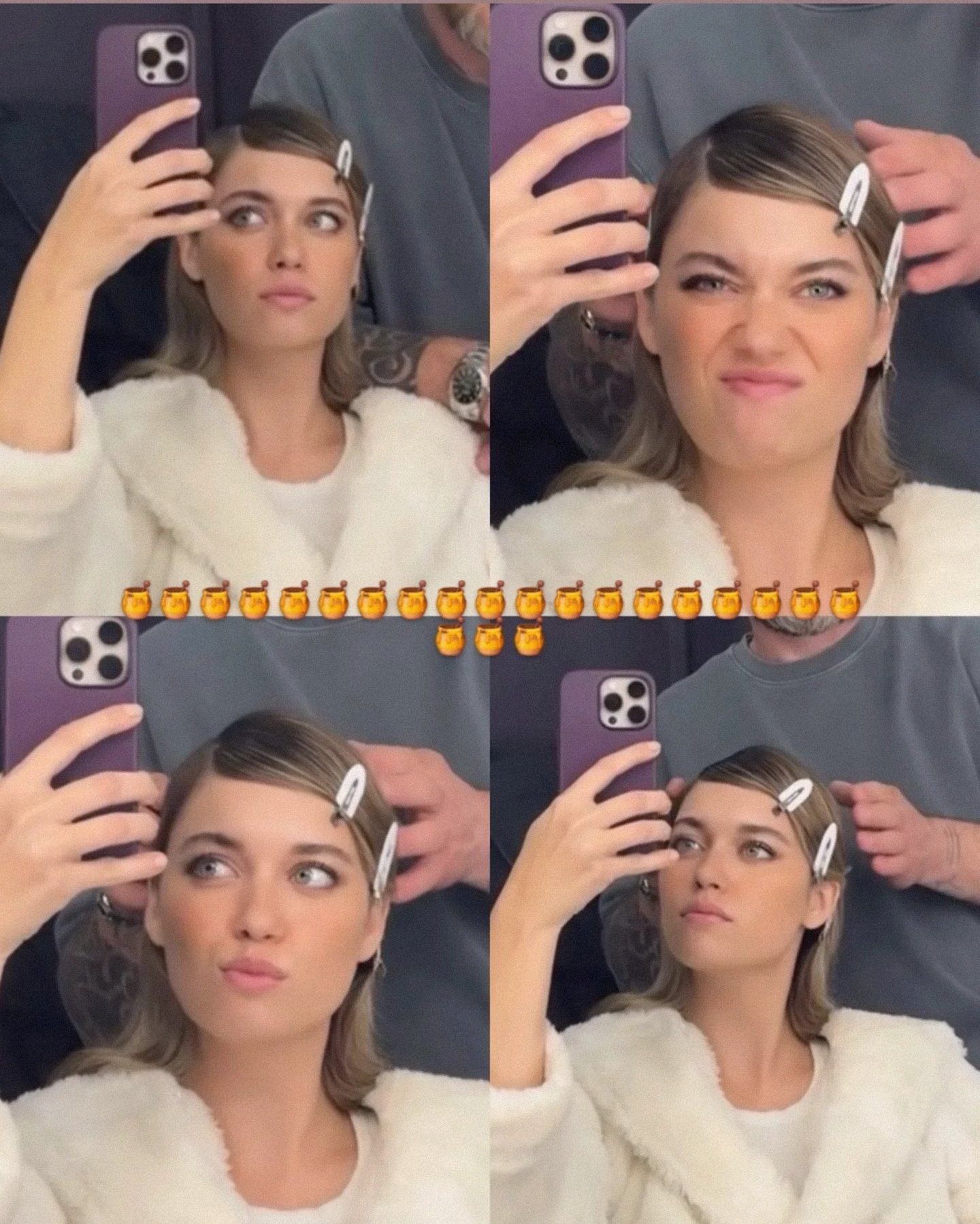 Казва на гримьора си, че се е получило. Понеже той пита: Според мен се получи, м?