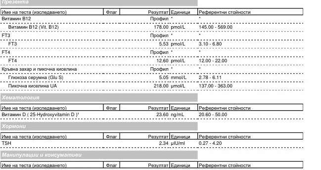 Здравейте , това са ми изследванията, доктора каза, че съм с Хашимото , с половин жлеза. Нищо не ми е предписано като добавки, сама си вземам селен ,и си пуснах витамин Д и Б, и вземам тях ,защото са с ниски стойности . Благодаря за вниманието .