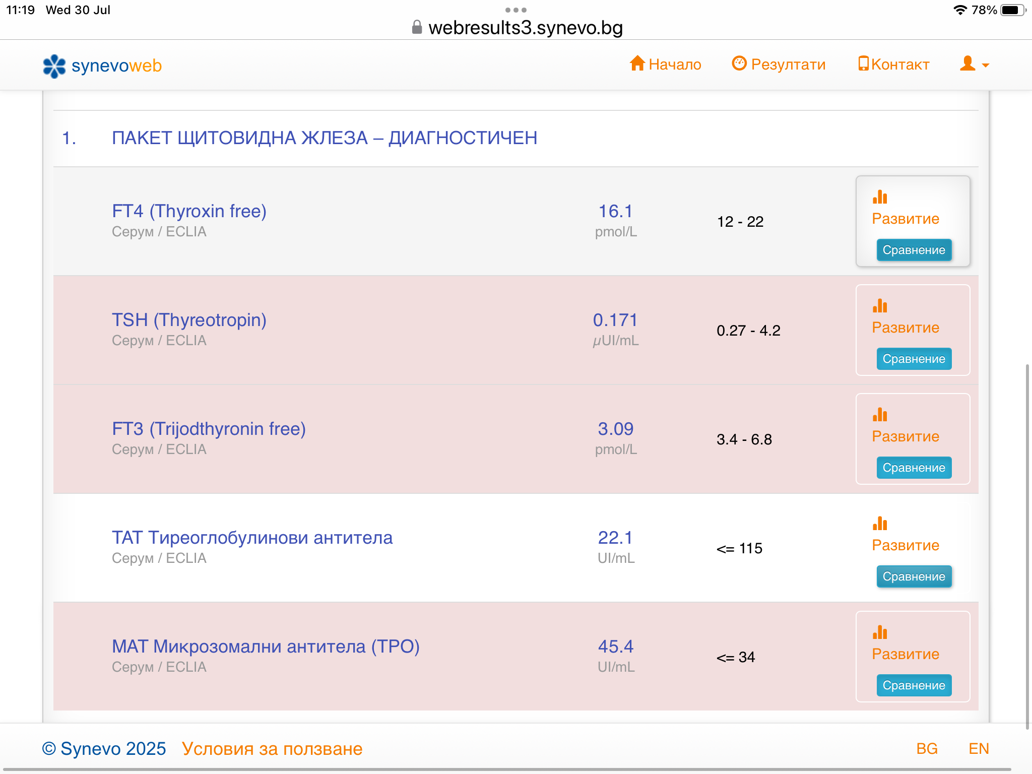 Вече направо не знам какво да правя и къде да отида, моля Ви за съвет, много се притесних от днешните резултати ТСХ 68....от 0.005 преди 2 месеца..